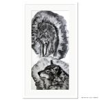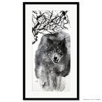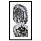 水墨画「気」狼 絵画 額入り 壁掛け インテリア 額付き 縦長 モダン 現代美術 精密複製 風水 日本画 屏風絵右 オオカミ