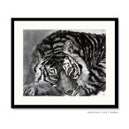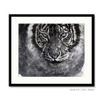 水墨画 トラ「気魄」虎 85cm×72cm 壁掛け 絵 モノトーン モノクロ 和風 アートフレーム 精密複製 本田一誠