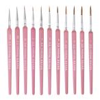 uxcell 詳細ペイントブラシ ナイロン毛 細密画ブラシ 水彩 油彩 アクリル画用 00000#-7# ピンク 11個