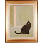 猫 絵画 黒猫 油絵 油彩画 高橋伸子 「予感・1」 額付き