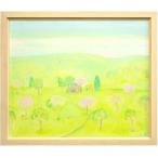 小林研三「 丘の春 」 油絵 ・ 油彩画 F8 (8号 ) 絵画 洋画 肉筆 手描き 真筆 風景 かわいい ほのぼの 癒し 桜 家 パステルカラー 明るい 送料無料