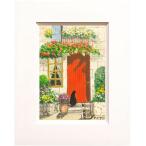 伊東拓実 「 赤い扉と二匹の猫 」(2) 油絵 ・ 油彩画 SM ( サムホール ) 絵画 洋画 肉筆 手描き 三毛猫 黒猫 かわいいねこ ネコ 小さい絵 送料無料