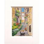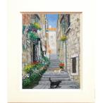 伊東拓実 「 猫のいる階段 」 油絵 ・ 油彩画 SM ( サムホール ) 絵画 洋画 肉筆 手描き 花 三毛猫 黒猫 ねこ 街並み 花 外国の風景 小さい絵 送料無料