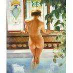 肉筆絵画 油絵 油彩画 洋画 (油絵額縁付きで納品対応可) F12号 「窓辺の裸婦」