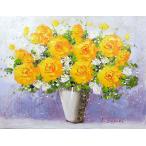 油絵 油彩画 洋画 (油絵額縁付きで納品対応可) SM 「黄バラ」 鈴木 郁夫