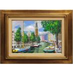 斉藤 要 「 アムステルダムの運河 」 油絵 ・ 油彩画 F4 ( 4号 ) 絵画 洋画 手描き 肉筆 外国の風景 オランダ ヨーロッパ 送料無料