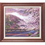 木村由記夫 「 渡月橋の桜 」 油絵 ・ 油彩画 F10 ( 10号 ) 絵画 洋画 肉筆 手書き 日本の風景 京都 嵐山 春 さくら 満開