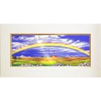 里中 游 「 虹と大地 」 油絵 ・ 油彩画 WF3 絵画 洋画 肉筆 手描き 真筆 花畑 明るい カラフル 青空 横長 送料無料
