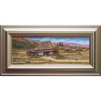猿渡一根「 晩秋 京都美山 」油絵 油彩画 WSM 絵画 洋画 肉筆 手描き 真筆 本の風景 茅葺屋根 田舎風景 自然 横長 送料無料