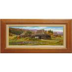 猿渡一根 「 秋色の里 ( 京都 美山 )」 油絵 ・ 油彩画 WF3 絵画 洋画 肉筆 手描き 真筆 日本の風景 古民家 田舎風景 茅葺屋根 横長 送料無料