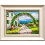 工藤 進「アーチのかかるガーデン」油絵・油彩画 F4 ( 4号 ) 絵画 洋画 肉筆 手描き 真筆 外国の風景 海 花 舟 晴れ 青空 かわいい きれい 明るい