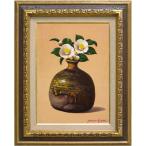 井上圭史 「 備前焼に椿 」 油絵 油彩画 F4 ( 4号 ) 絵画 洋画 肉筆 手描き 静物 花 つばき ツバキ 写実 送料無料