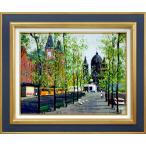 前島 俊雄「運河沿いの並木(オランダ・アムステルダム)」油絵・F6号■素敵な作品■小田切訓を彷彿【小竹美術】真作保証