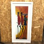 ティンガティンガ アート サバンナを行くマサイ家族 オレンジ 日輪 40.5×84cm [jgg]