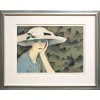 東郷青児 「 バラ一輪 」 リトグラフ 版画 版画 洋画 人物 花 帽子 美人画 人気 昭和 送料無料