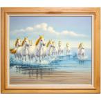 佐藤純一「白馬」油絵・油彩画F20(20号) 絵画 洋画 肉筆 手描き 動物 海 大きい絵 うまくいく 馬九いく 縁起 送料無料