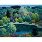 成田禎介 「白峰の湖畔」 油彩8号 額付き