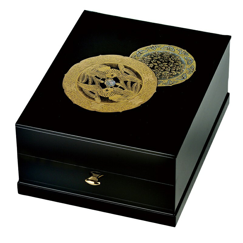 会津漆器・会津塗 黒 引出付 文庫 鳳凰 貝入り