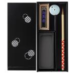 筆ペン付き限定セット!大人の書道セット 越前塗 黒(小)/花丸文 送料無料[AR-03SH-AZ] プレゼント 化粧箱 携帯用 漆塗 漆器 花柄