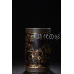 【時代の彩】中国古美術 清代 老竹胎 漆器 真金描繪 金漆 人物故事 題詩 筆筒 骨董 工芸品 文房具 旧家蔵收 清代様式 竹胎 書斎飾 時代物 鑑賞品 R07101415