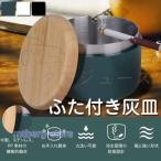 ふた付き 灰皿 大容量 ステンレス 卓上 屋外 蓋付き ビジネス オシャレ 持ち運びに便利 車用 丸洗い 木製の蓋