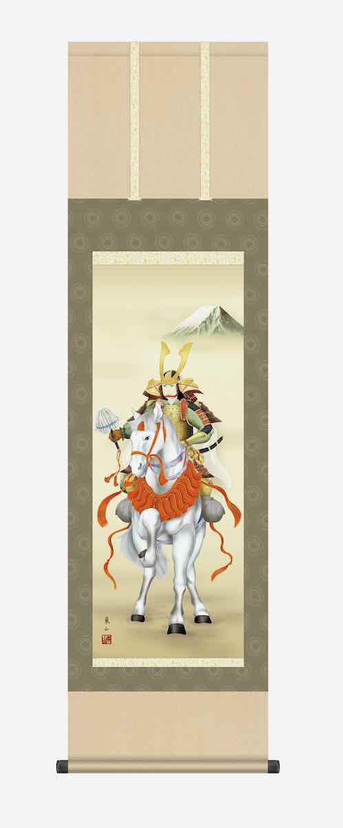 【スーパーSALE10%OFF】10年保証 掛け軸 節句画 行事飾り 端午の節句 武者 白馬武者 榎本 東山 尺三 化粧箱付き 洛彩緞子本表装(らくさいどんすほんびょうそう) モダン 掛軸 床の間 和室 おしゃれ 壁掛け 絵
