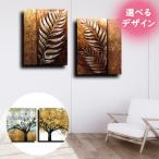 絵画 壁掛け 風景画 凸凹質感 モダン アートパネル インテリア 手書きの油彩画 2枚セット 植物 選べるデザイン メタリックな葉っぱ 2本の木