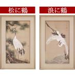 伊藤若冲 絵画 白鶴図額装セット (松に鶴・浪に鶴) 【複製】【美術印刷】【巨匠】【変型特寸】