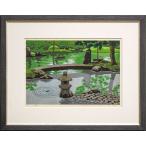 井堂雅夫 「 静水 」 木版画 版画 絵画 日本の風景 京都 日本庭園 池 緑 送料無料