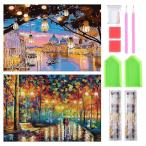 ダイヤモンドアート キット ヨーロッパ 城 川 ランタン ビーズ絵画 人気 やり方簡単 DIY 手作り 大人 子供 部屋 喫茶 初心者 現代壁アート 装飾品 ビーズアート