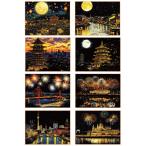 siawadeky スクラッチアート A4サイズ 8枚セット 観光地 夜景 花火 川 塗り絵 専用竹ペン付き 暇潰し