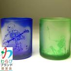 ふるさと納税 蕨市 蕨硝子 河鍋暁斎シリーズ ペアセット 骸骨の花火見立 色被せガラス 緑色・青色