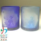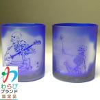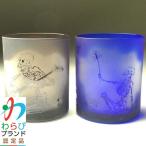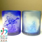 ふるさと納税 蕨市 蕨硝子 河鍋暁斎 ペアセット 三味線を弾く骸骨 骸骨の花火見立 色被せガラス 瑠璃色・瑠璃色