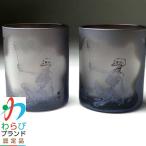 ふるさと納税 蕨市 蕨硝子 河鍋暁斎シリーズ ペアセット 骸骨の花火見立 色被せガラス 紫色・紫色