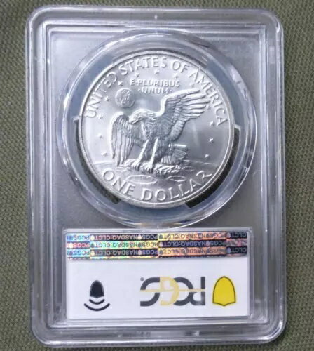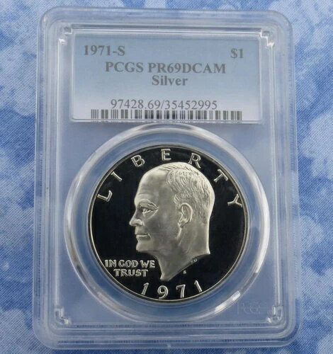 1971 S PCGS PR 69 D-Cam アイゼンハワー シルバー 1ドル、ホールサイン、アポロ11号記章
