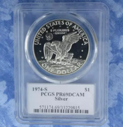 1974 S PCGS PR 69 D-Cam アイゼンハワー シルバー $1、デビッド・ホール、アポロ11号記章 Rev