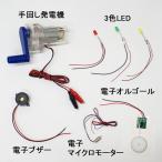 組立済手廻し発電機実験キット(完成品) 3色LED・電子オルゴール・マイクロモーター・電子ブザー付属