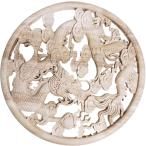 MONOSTORE 龍 木製 レリーフ 風水 開運 龍神 インテリア 壁 アンティーク 鍋敷き ドラゴン フレーム(木目, 30cm)