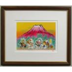 開運 絵画 富士山 七福神 九馬 赤富士 馬九行 赤富士九馬 風水 開運絵画 アート 運気アップ 47x39.5cm 額装付き