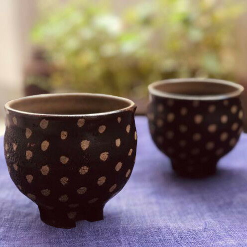 【ふるさと納税】<南陶窯>四つ足カップ丸形2個セット【ドット】 ☆ 読谷村 やちむん ブセナテラス内 久場政一 陶芸家 やきもの エスニック ポタリー 沖縄県