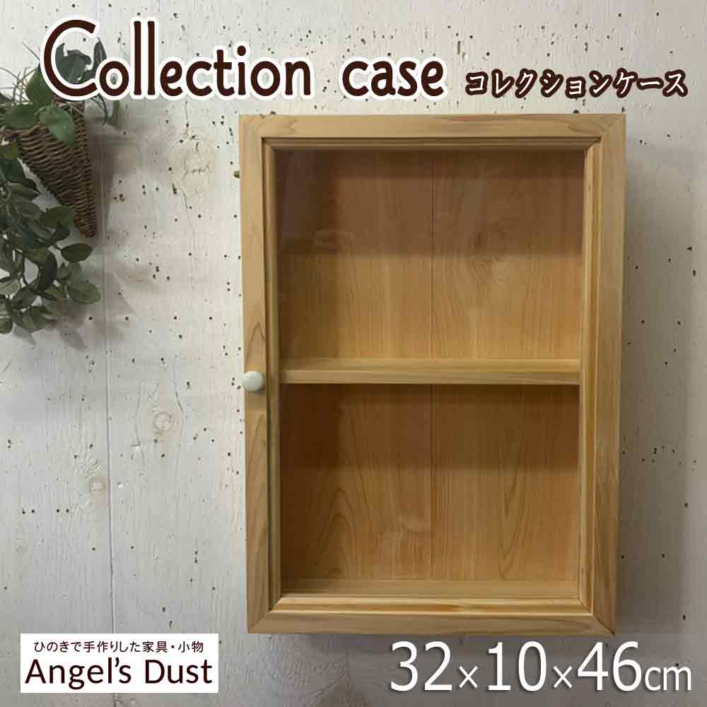 【期間限定10%OFF】コレクションケース 32×10×46cm 棚板一枚付き 白い陶器のつまみ 壁掛け 片開き扉 木製 ひのき ハンドメイド オーダーメイド
