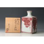 吉田隆 誉田窯 釉裏紅葡萄文角瓶 共箱 本物保証