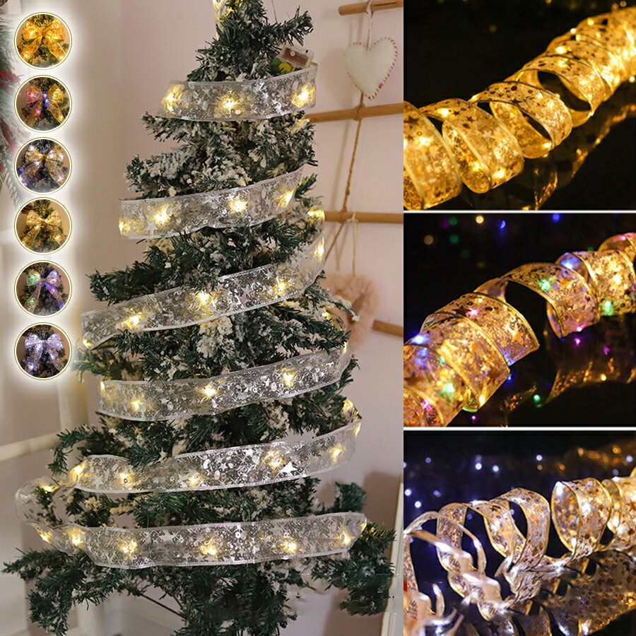 【オープン記念!全商品対象50%OFF】クリスマスツリー 飾り リボンライト 2M 3M 電飾 LED イルミネーションライト 電池式 クリスマス 飾りツリーled クライト屋外に適 クリスマスツリー光 ベッドルーム アウトドア 結婚式 クリスマスリボンライト