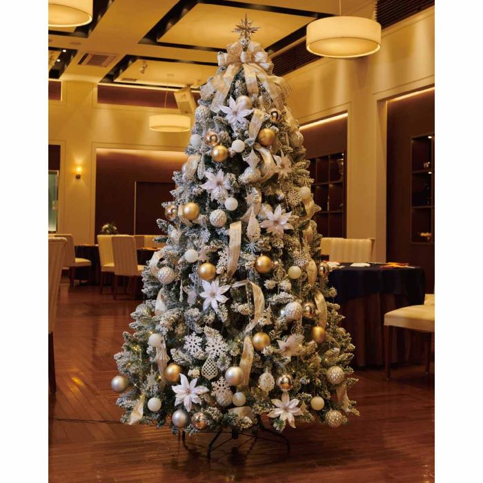 【5%OFFクーポン有り!楽天SS期間中♪】クリスマスツリーセット ホワイトゴールド 高さ240cm 1セット送料無料 大型 おしゃれ 北欧 ライト led 電飾 高級 特大