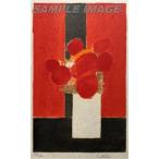 ベルナール・カトラン「黒いテーブルの上の赤い花束」(版画)【額縁付き】[A250014]Bernard Cathelin