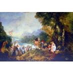 絵画 世界の名画シリーズ 額縁付 アントワーヌ・ヴァトー 「シテール島での愛の巡礼」 P50号 プリハード