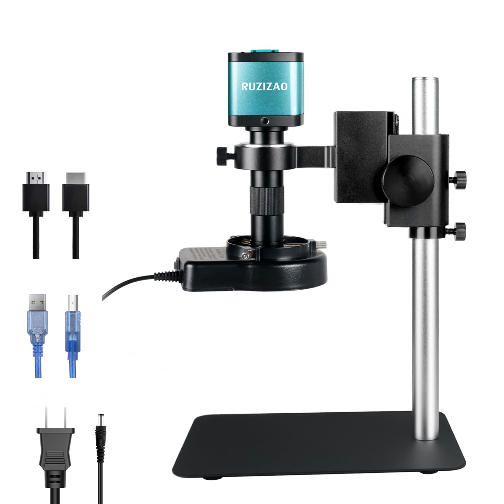 RUZIZAO デジタル工業顕微鏡 13MPカメラ 130Xズーム HDMI/VGA出力 1080P HD|LEDリングライト&金属スタン