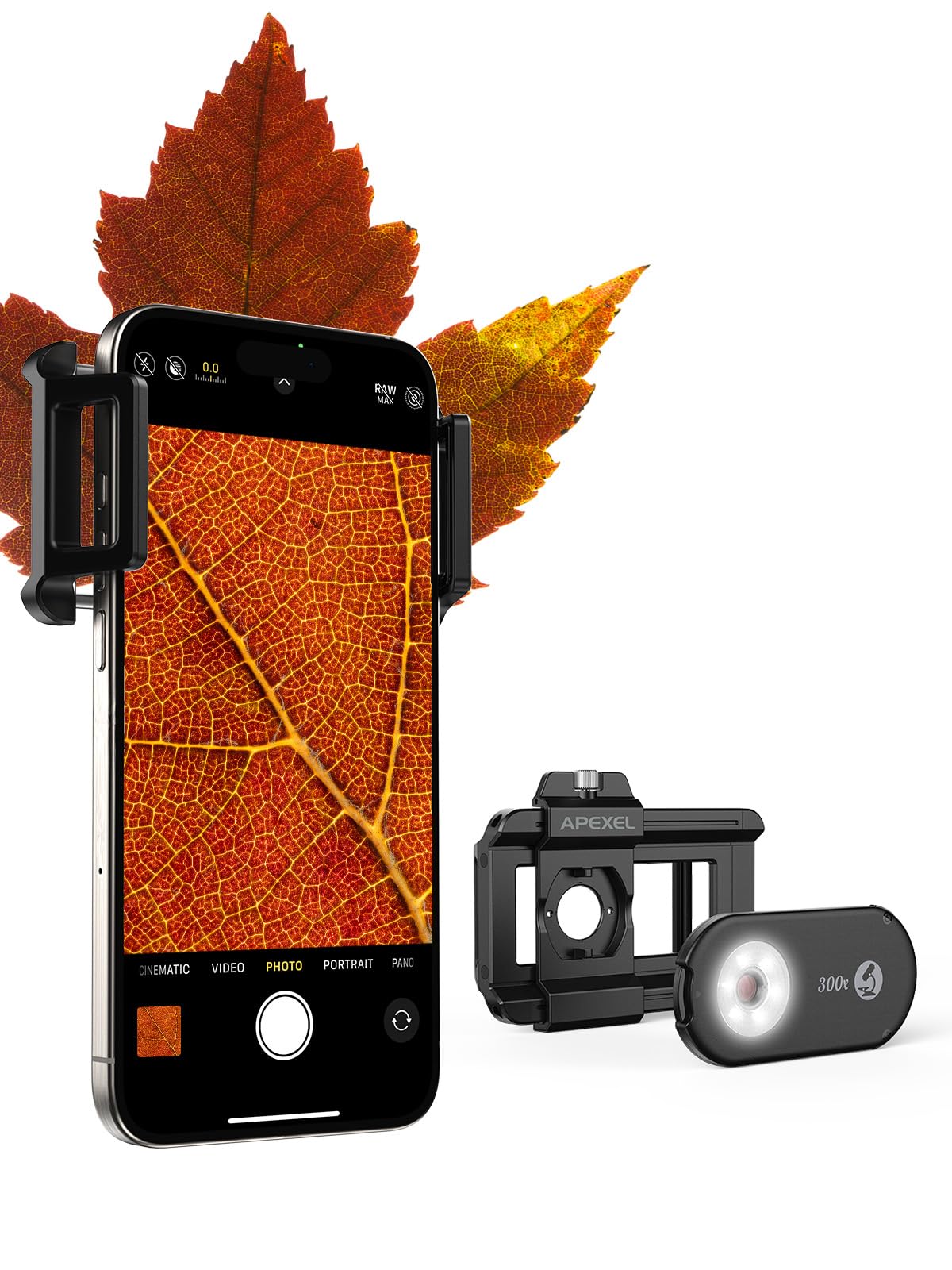 APEXEL 顕微鏡 スマホ顕微鏡 300倍拡大可能 マルチ撮影補充照明LEDライト付き「ミクロ観察を日常に」持ち運び易いマイクロスコープ 99%のスマートフォン対応 生物観察 ミクロ撮影 プレゼント 子供/小学生の誕生日プレゼント「日本語取扱説明書あり」