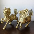 鎮邪門獅子一対 銅製置物 風水開運 家内安全・魔除け・仕事・金運上昇 / FU0006014