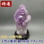 天然石彫刻置物 アメジスト 踊り布袋 台座付き